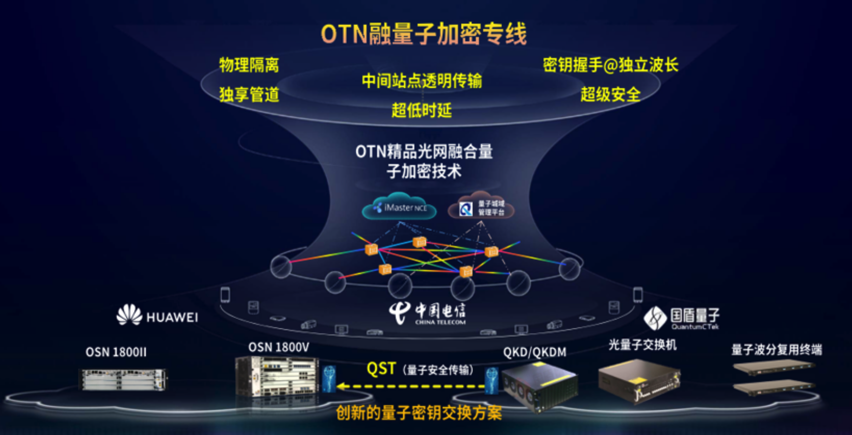 中國電信始終堅持為政企客戶提供高品質網絡服務,2019年,中國電信正式發布“新一代OTN精品光網”,首次提出以“高品質網絡”提升政企客戶體驗的建網理念,實現“以網促云、云網融合”。此次,中國電信將領先的OTN精品光網與先進的量子加密新機制和新算法相融合,進一步提升OTN精品專線的安全性能,實現更高安全等級的運力傳輸。